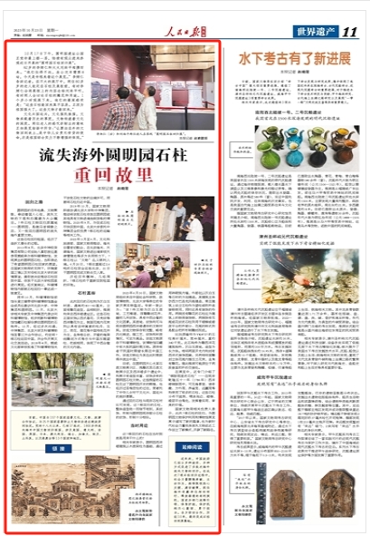 国家文物局相关负责人表示,此次7根石柱的回归,为圆明园文物保护利用和博物馆展览展示谱写了新的篇章,也为新时代社会力量投身流失文物返还工作创立了新模式,开辟了新路径。