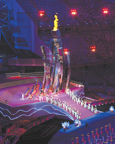 采集自亚残运会火种永久保留地——广州亚运会亚残运会博物馆的火种,经过杭州市“三江两岸”的传递后,抵达杭州奥体中心体育场。
