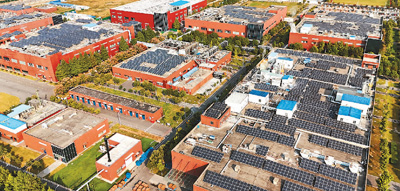 近年来,江苏省连云港市充分利用工业厂房、建筑屋顶等闲置资源,全面推动光伏项目发展,让“绿色”覆盖城市“屋顶”。图为在连云港高新区海州工业园,正大天晴药业集团股份有限公司屋顶光伏电站进行扫尾施工。