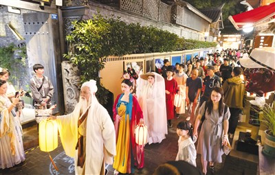 这场活动由四川省文化和旅游厅主办。现场还举办了丰富多彩的文化活动,包括非遗技艺传承人展示长嘴壶茶艺、川剧变脸表演等。在文创展区,蜀锦蜀绣、油纸伞、漆器、瓷胎竹编茶具等特色展品吸引了不少嘉宾拍照。嘉宾们还积极参与制作木版年画拓印,把印有“福”字的画纸带回家。