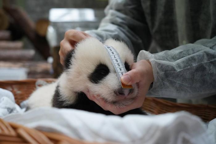 园方表示,熊猫宝宝的体重已经达到3428克,与之前的体检结果相比,身长增加了7厘米,尾巴的增长速度有所放缓,长度依然保持在6.8厘米。