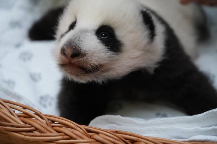 园方10月6日发文称,熊猫幼崽在出生后第42天睁开了眼睛,开始对光线有所反应,但要到两个月左右时才能开始看见东西。