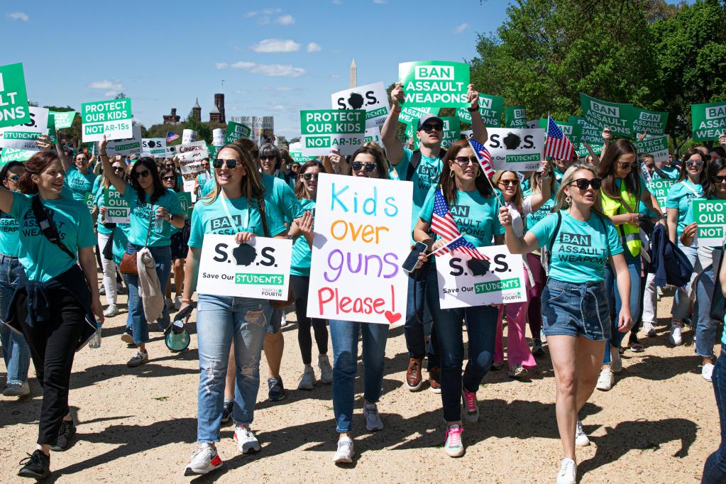 4月17日,人们在美国首都华盛顿参加控枪游行,呼吁禁止销售攻击性武器,应对美国枪支暴力问题。图源:新华社