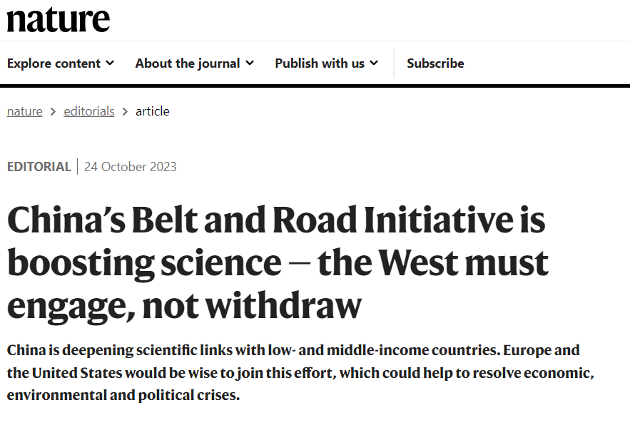中国日报网10月25日电 全球权威科学周刊《自然》杂志网站10月24日发表社论文章称,中国提出的共建“一带一路”倡议推动全球科技发展,中国正在深化与发展中国家的科学合作。欧洲和美国理应共同合作,这将有助于解决全球经济、环境和政治危机。