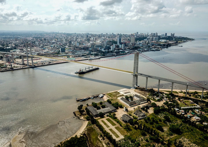 这是2019年4月8日在莫桑比克首都马普托拍摄的马普托大桥(无人机照片)。新华社记者 张宇 摄