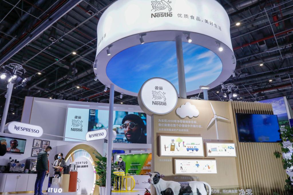 这是2021年11月9日拍摄的进博会食品及农产品展区的瑞士雀巢展台。新华社记者张玉薇摄