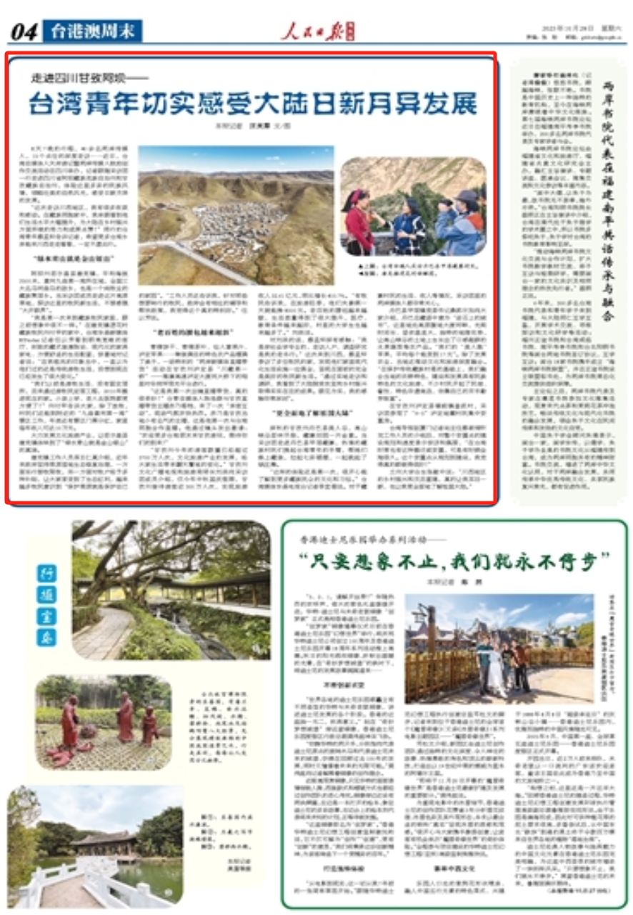 兰州大学台生张敏中说:“川西地区的乡村振兴和灾后重建,真的让我耳目一新,也让我更全面地了解祖国大陆。”