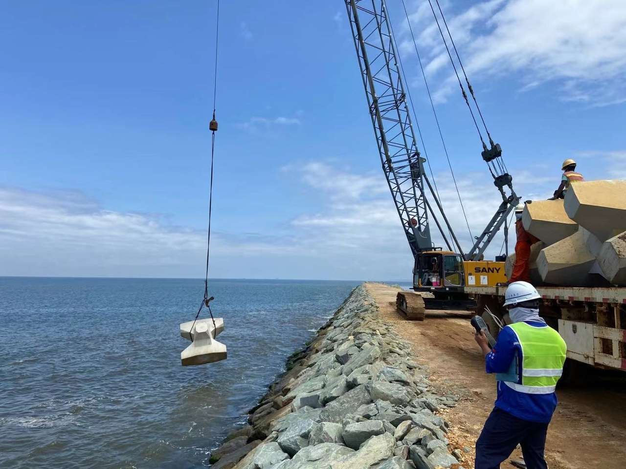 卡约新港口项目位于安哥拉卡宾达省,由中国进出口银行提供买方信贷资金,由中国路桥工程有限责任公司以EPC总承包方式实施。项目包括新建深水港口工程、港口设备的采购,以及与港口港区配套的自贸区及相关设施建设。港口工程的主要部分是在近岸水域新建一个离岸式700米长的集装箱和散杂货码头,背后形成吹填堆场,还包括引堤、引桥和陆域设施,形成了一个功能齐全的大型深水港口,设计年吞吐量达580万吨。王栋表示,卡约新港口项目已完成超过40%的工程,预计将于2025年年底竣工。这个项目不仅代表着中国企业的高水平工程实施,还体现了中安两国在“一带一路”框架下的密切合作。