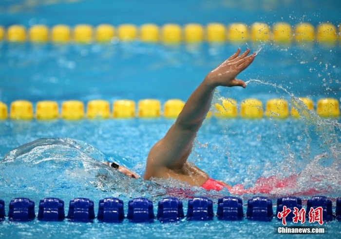 10月27日,杭州第4届亚残运会游泳混合4乘100米自由泳接力34分决赛在杭州奥体中心游泳馆举行,中国队以4分12秒71的成绩刷新亚洲纪录和亚残运会纪录,夺得本项目冠军。图为中国队蒋裕燕在比赛中。中新社记者 王刚 摄