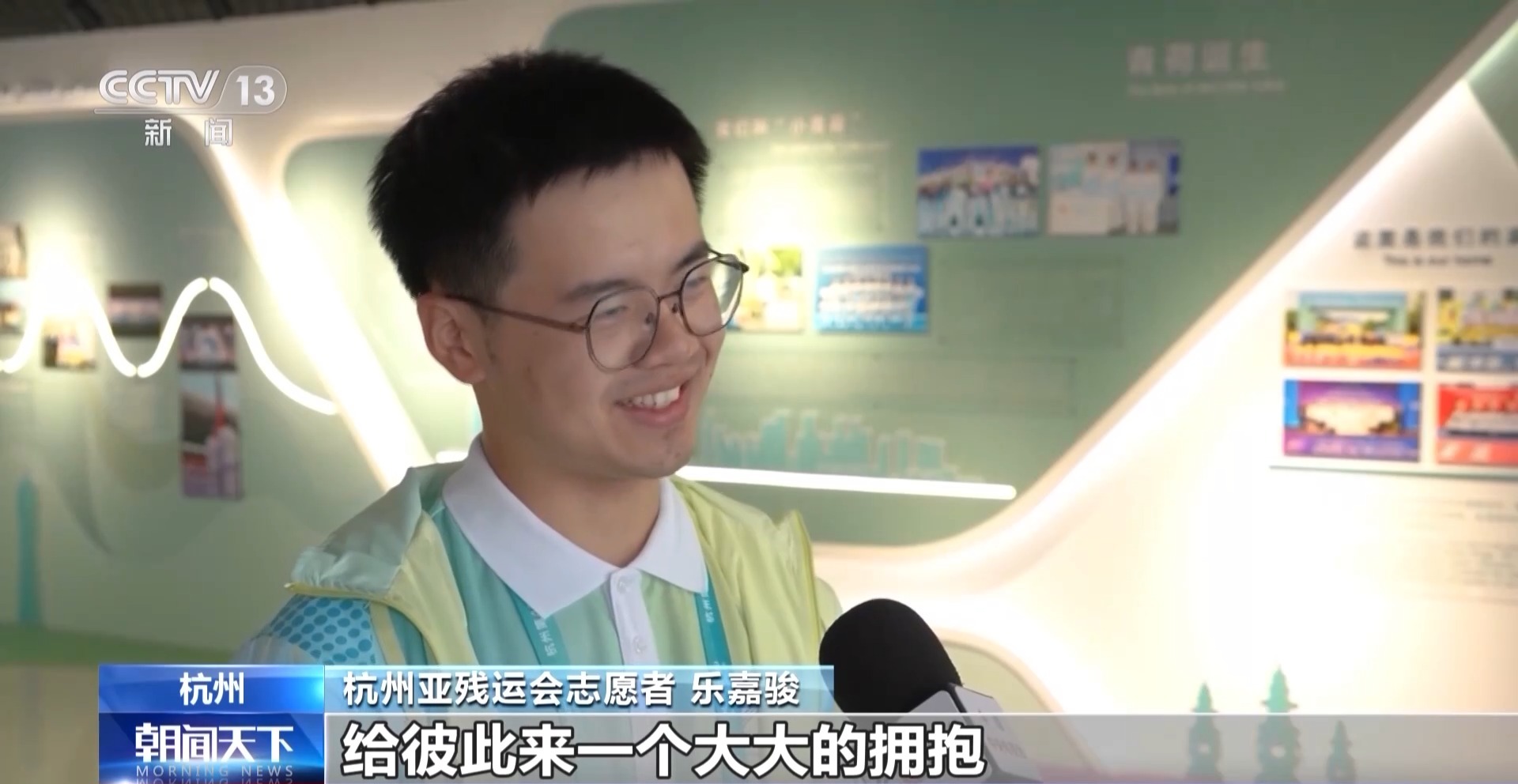 杭州亚残运会志愿者 乐嘉骏:希望下次见面的时候,我们也能第一时间认出彼此,给彼此来一个大大的拥抱。