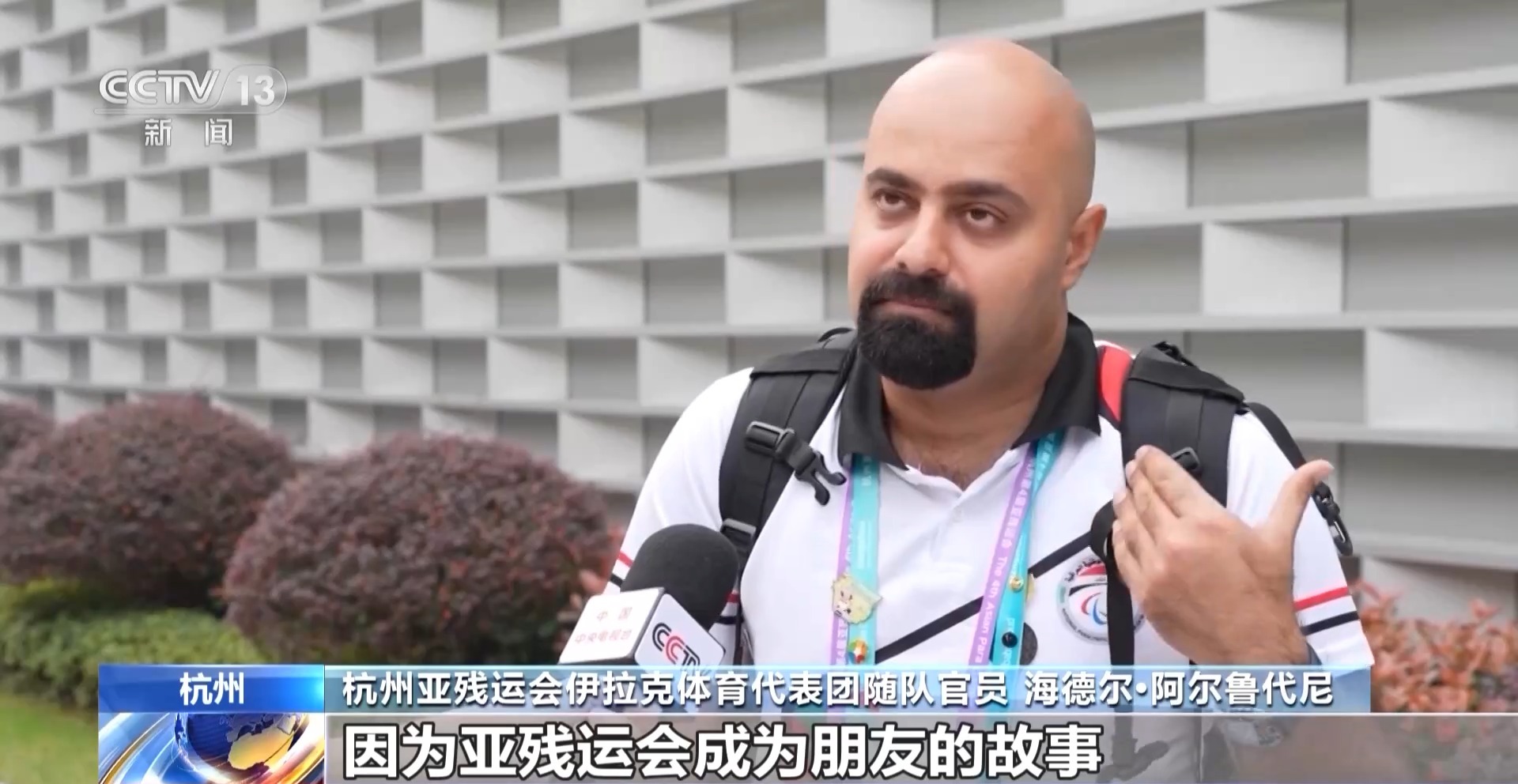 杭州亚残运会伊拉克体育代表团随队官员 海德尔•阿尔鲁代尼:我想志愿者们也会记得,他们和这个伊拉克人因为亚残运会成为朋友的故事。