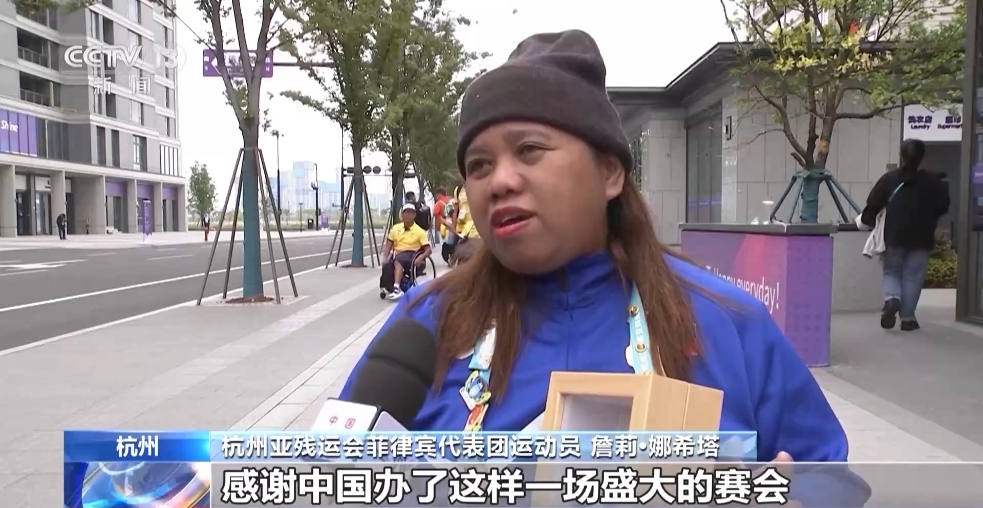 杭州亚残运会菲律宾代表团运动员 詹莉•娜希塔:在赛场上,残疾人运动员们可以充分展示各自的风采。亚残运村里的一切也都非常好,感谢中国办了这样一场盛大的赛会,体育让我们成为更好的自己。