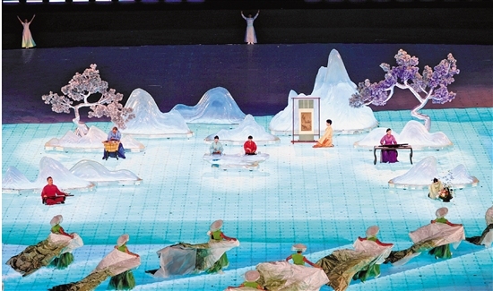 中国的文化,非常重视礼乐。整场闭幕式音乐以礼乐为基础,采用中国韵味的民族音乐元素,选择民族乐器笛与萧、浙派古琴作为领奏乐器,体现浓郁的江南韵味。此外,还融入“宋时四雅”以及非遗元素,呈现“淡泊、趣远、率性、求真”的审美意趣。