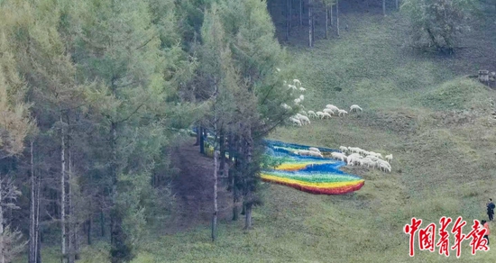 羊群正路过《层林叠浪》。中青报·中青网见习记者 李瑞璇/摄