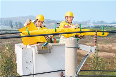 随着今年迎峰度冬时段到来,国网山东省兰陵县供电公司组织电力工作人员到辖区开展电网秋检工作,对老旧设备进行检修消缺、升级改造,确保电网平稳运行和供电安全可靠。图为电力工作人员正对供电设备进行检查。宋国庆摄(人民视觉)