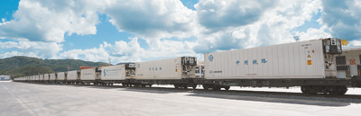 冷藏货运班列驶入中国磨憨铁路口岸。海外网 谢 明摄