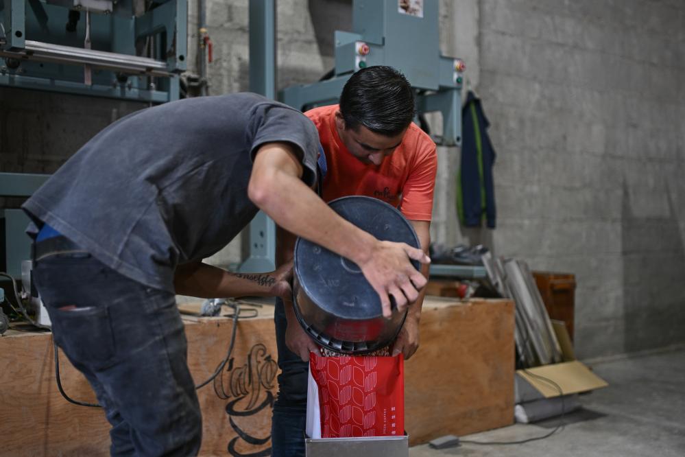2023年5月6日,在洪都拉斯马尔卡拉的一家咖啡工厂,工人打包准备出口的咖啡生豆。洪都拉斯的自然条件非常适合咖啡种植,是中美洲主要咖啡出口国之一。新华社记者辛悦卫摄