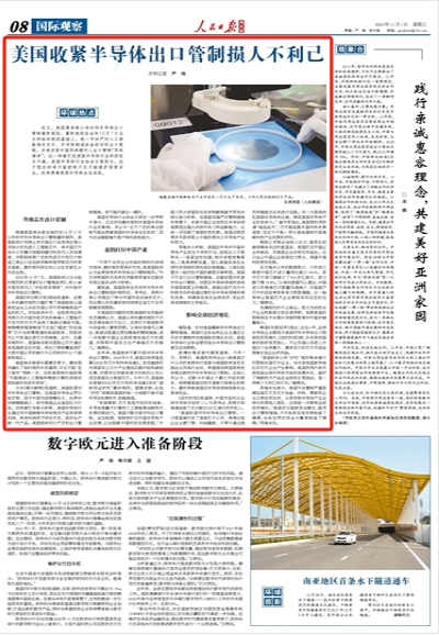 近日,美国商务部公布对华半导体出口管制最终规则。最终规则在去年10月7日出台的临时规则基础上,进一步加严对人工智能相关芯片、半导体制造设备的对华出口限制,并将多家中国实体增列入出口管制“实体清单”。这一举措引发美国半导体行业的担忧与不满。美国半导体行业协会日前表示,过于宽泛的单方面控制不仅不能维护国家安全,还将损害美国半导体生态系统。