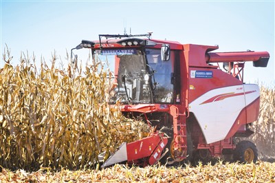 如今,黑土地的智能化管理水平日益提高。图为不久前,无人驾驶农机在中国科学院位于吉林省的一处示范基地内收获玉米。新华社记者 张 楠摄