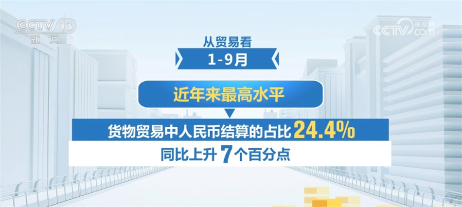 今年以来,人民币国际化取得新的可喜进展,从贸易看,1—9月,货物贸易中人民币结算的占比达到了24.4%,同比上升7个百分点,为近年来最高水平;与此同时,人民币融资货币功能稳步提升。9月份,人民币在全球贸易融资中占比为5.8%,同比上升1.6个百分点,排名上升至第二。目前,全世界有80多个国家和经济体将人民币纳入储备货币。