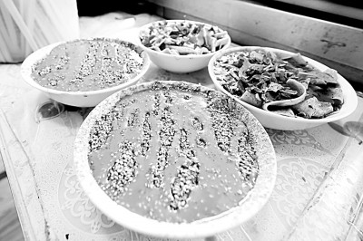 比如,茶汤、面茶、油茶面,三种传统天津小吃,名字里都带一个“茶”字,主材都是简单的面和水,但因配料和烹制方法不同,最终形成了三种口味迥然不同的小吃。