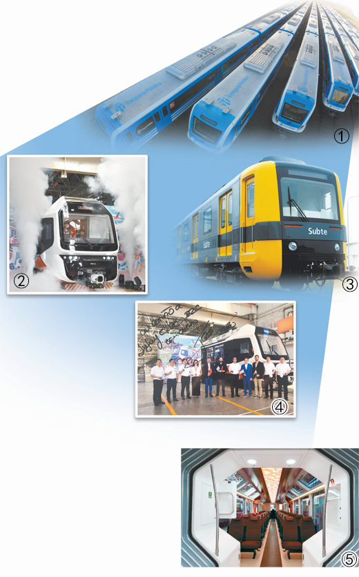 在地铁方面,2013年,继地铁列车在布宜诺斯艾利斯上线之后,当年再次签署阿根廷布市A线地铁车辆订单;2018年,A线中车造地铁列车又继续服务阿根廷C线。
