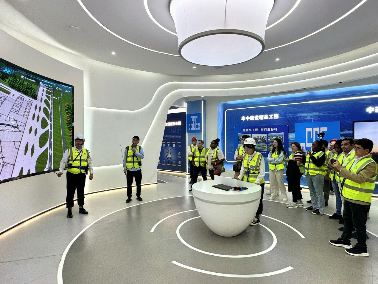 10月25日,2023“一带一路”媒体合作论坛联合采访团走进位于湖南长沙的中国建筑长沙机场改扩建工程T3航站楼项目,来自亚、欧、非、美等大洲十余国记者深入项目现场,近距离体验中国建筑企业运用智慧建造、绿色建造、数字建造等技术,着力推动全球深度链接,共筑美好世界的生动实践。
