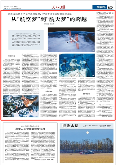 人民网转载人民日报文章,梳理了从神舟五号到神舟十七号,从首次太空飞行到长期驻守空间站,20年间中国载人航天事业实现的跨越式发展,以及取得的成就。