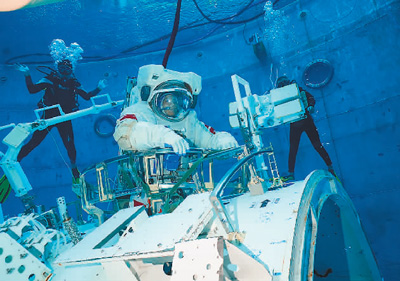 航天员汤洪波在进行水下训练(8月24日摄)。孔方舟摄(新华社发)