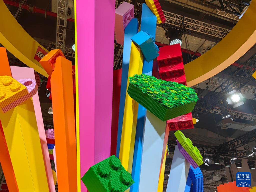 第六届进博会乐高展台上,10万块乐高积木颗粒搭建而成的大型3D乐高积木模型“玩乐之心”。新华社记者周蕊摄