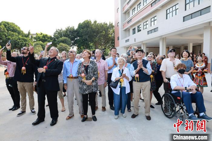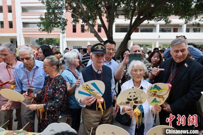 11月5日,美中航空遗产基金会主席杰弗里·格林和飞虎队老兵哈里·莫耶、梅尔文·麦克马伦携飞虎队后代,走进“飞虎队友谊学校”——广西柳州市壶西实验中学。
