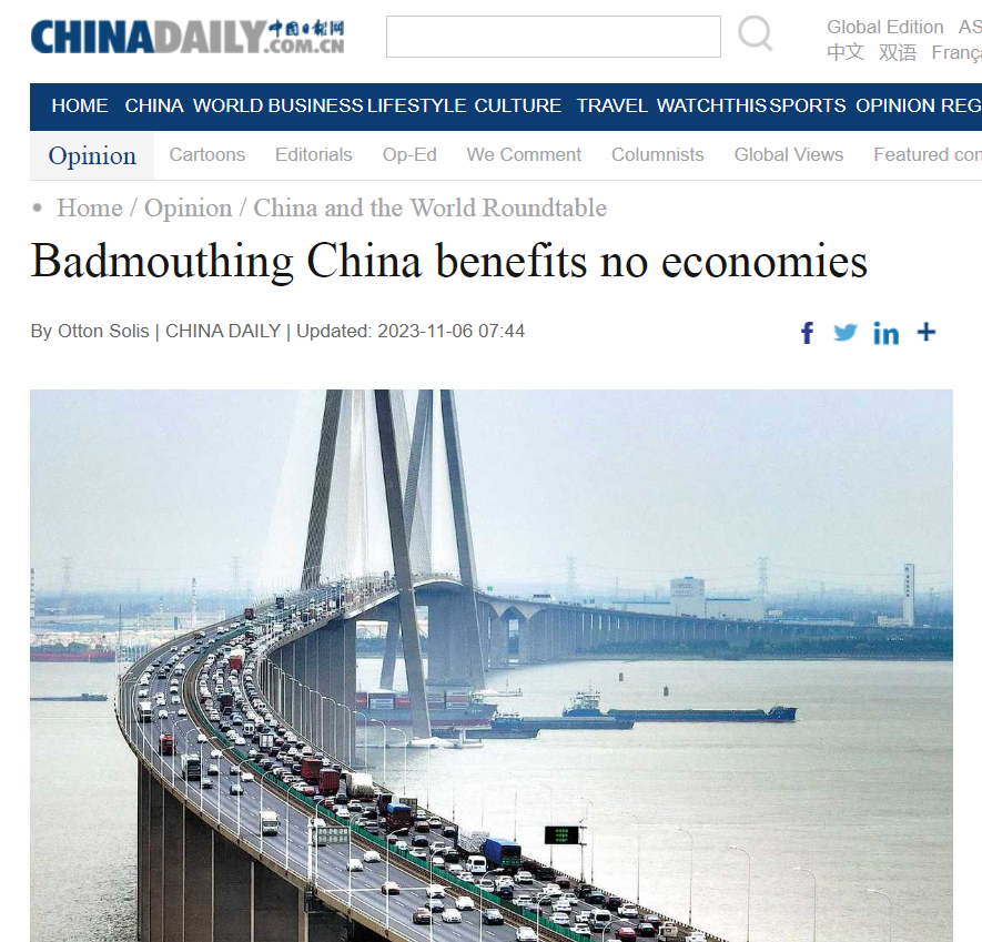 中国日报网11月6日电 西班牙IE大学教授、哥斯达黎加总统前经济顾问奥通·索利斯·法利亚斯在中国日报网刊文称,无论用何种数据衡量,中国经济都是全球经济增长的主要驱动力。中国经济这艘巨轮在相互依存的世界大洋上不断劈波斩浪,其重要性怎么强调都不为过。