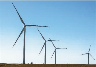 哈萨克斯坦札纳塔斯风电场风机。新华社发