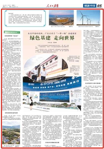 习近平主席在第三届“一带一路”国际合作高峰论坛开幕式上的主旨演讲中宣布了中国支持高质量共建“一带一路”的八项行动,其中之一就是“促进绿色发展”。具体举措中包括,“中方将持续深化绿色基建、绿色能源、绿色交通等领域合作”。自即日起,本报推出系列报道“绿色创新面面观”,分别聚焦绿色基建、绿色能源、绿色交通三大领域,看中国与世界在这三大领域如何开拓创新、合作共赢,将绿色、低碳、可持续的理念不断变为现实。