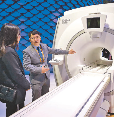 此次通用电气医疗共带来近30款创新产品。例如,最新的光谱诊疗系统可在短时间内帮助临床获得更多维、更精准的信息和数据。“进博会不仅是高水平开放的共享平台,更是促进国内国际双循环的重要舞台。中国坚持推进高水平对外开放,更加坚定了跨国企业投资中国市场的信心。”通用电气医疗全球执行副总裁张轶昊说,今年以来,通用电气医疗在北京落地了PET/CT分子影像产线、在天津落地了PET/MR产线、在成都投资建设精准医疗产业基地以及与国药器械成立医疗设备合资公司,上海创新中心等重点项目也在陆续推进中。“未来我们将更加积极地整合全球创新元素,携手合作伙伴推动创新成果落地。”