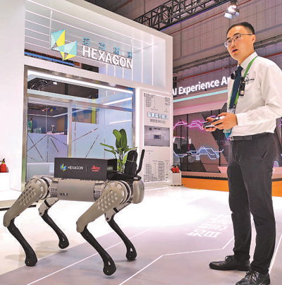 在海克斯康公司展台,工作人员演示自主巡检产品。