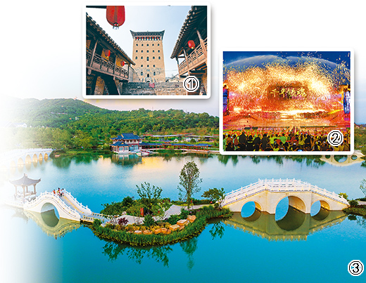 图①:晋城市郭峪古城豫楼。王林摄 图②:“千年铁魂”实景演艺。冯满田摄 图③:晋城市凤城康养示范区龙马湖公园。张文庭摄