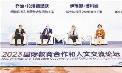 2023国际教育合作和人文交流论坛日前在浙江宁波东钱湖畔举行。博鳌亚洲论坛原秘书长龙永图、希腊前总理乔治·帕潘德里欧、联合国教科文组织前总干事伊琳娜·博科娃和北京大学燕京学堂名誉院长袁明在高端对话环节展开了一场“头脑风暴”。
