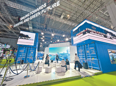 “持续发展 绿色先行”是希腊比雷埃夫斯港务局展台的主题,蓝白相间的展台通过虚拟现实、实景地图等数字化手段直观呈现港口的建设成果:中国企业生产的汽车从这里进入欧洲市场;依靠中欧陆海快线,比港帮助跨国企业打造新型供应链交付模式,助力中欧互联互通。