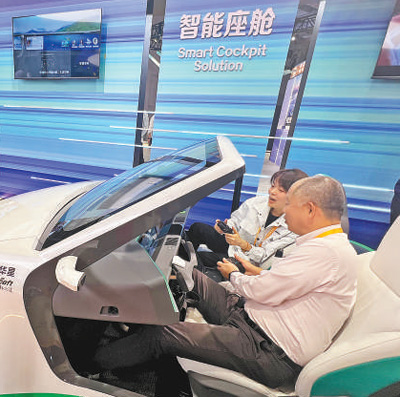 参观者在体验智能座舱。本报记者 杨 迅摄