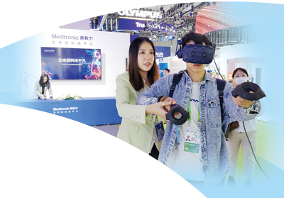 参观者通过虚拟现实技术体验创新医疗技术和疗法。本报记者 王海林摄