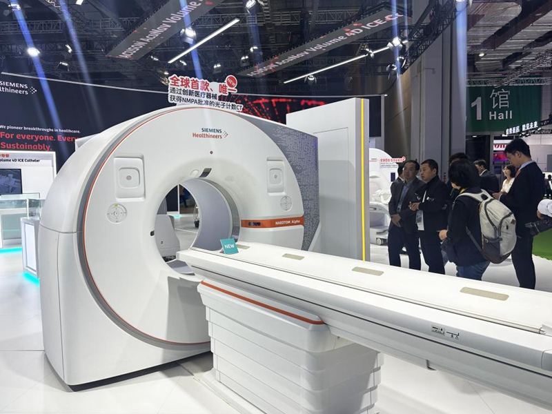 11月8日,第六届进博会西门子医疗展台上的光子计数CT。新华网记者 赵煜彤 摄