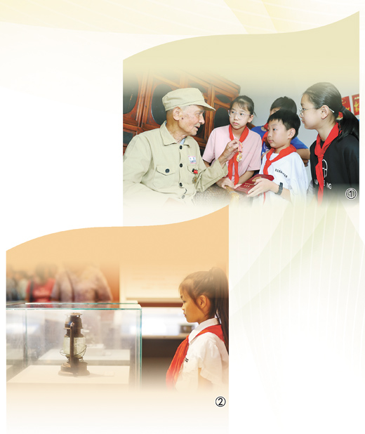图①:浙江省台州市路桥区蓬街镇中心小学组织学生来到老党员家中,倾听其当年参军入伍、保家卫国的故事。蒋友青摄(人民视觉)