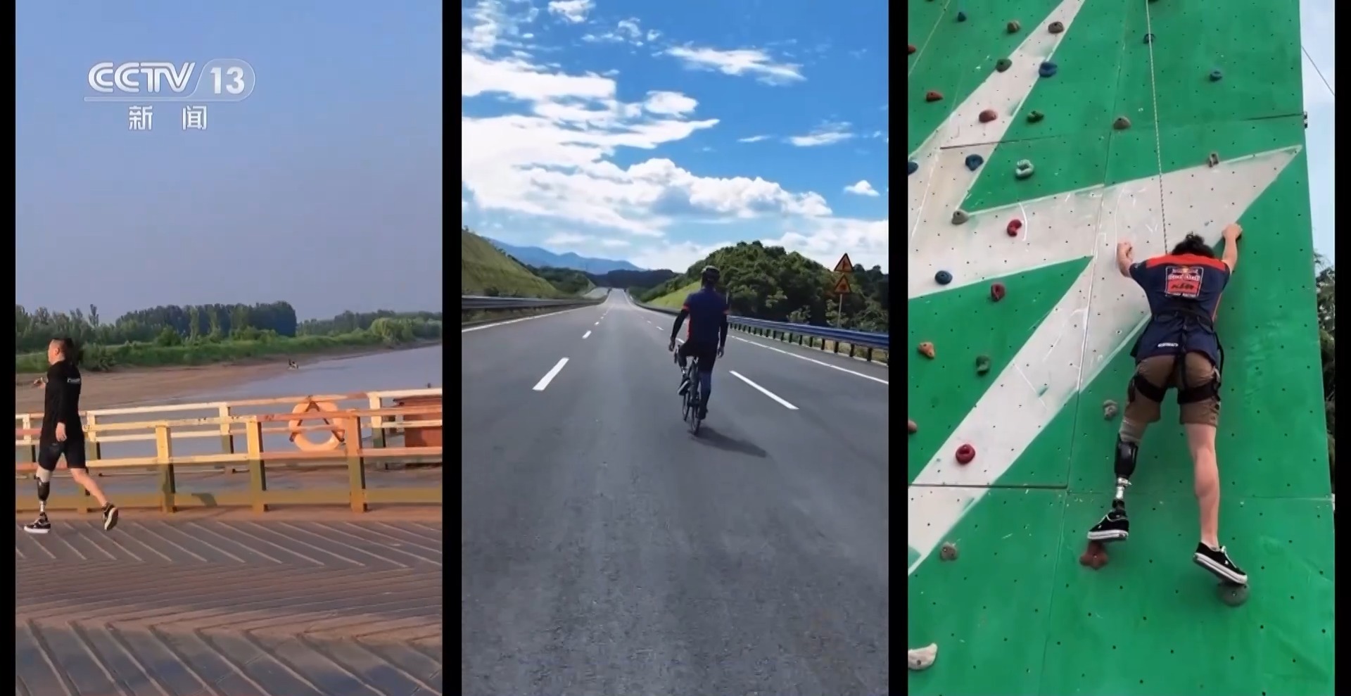 左小腿受伤以前,当时32岁的王广玉君喜欢短跑、爬山、骑车。从重新振作到选择安装上适合自己的义肢产品,他用了三个多月的时间。之后从重新学步,到再次奔跑。三年来,他穿着义肢,用过三小时登顶泰山;也和搭档在杭州亚残运会开幕式,向观众献上长达五分钟的表演。今年是他第三次,以所穿义肢品牌的形象大使身份来到进博会。