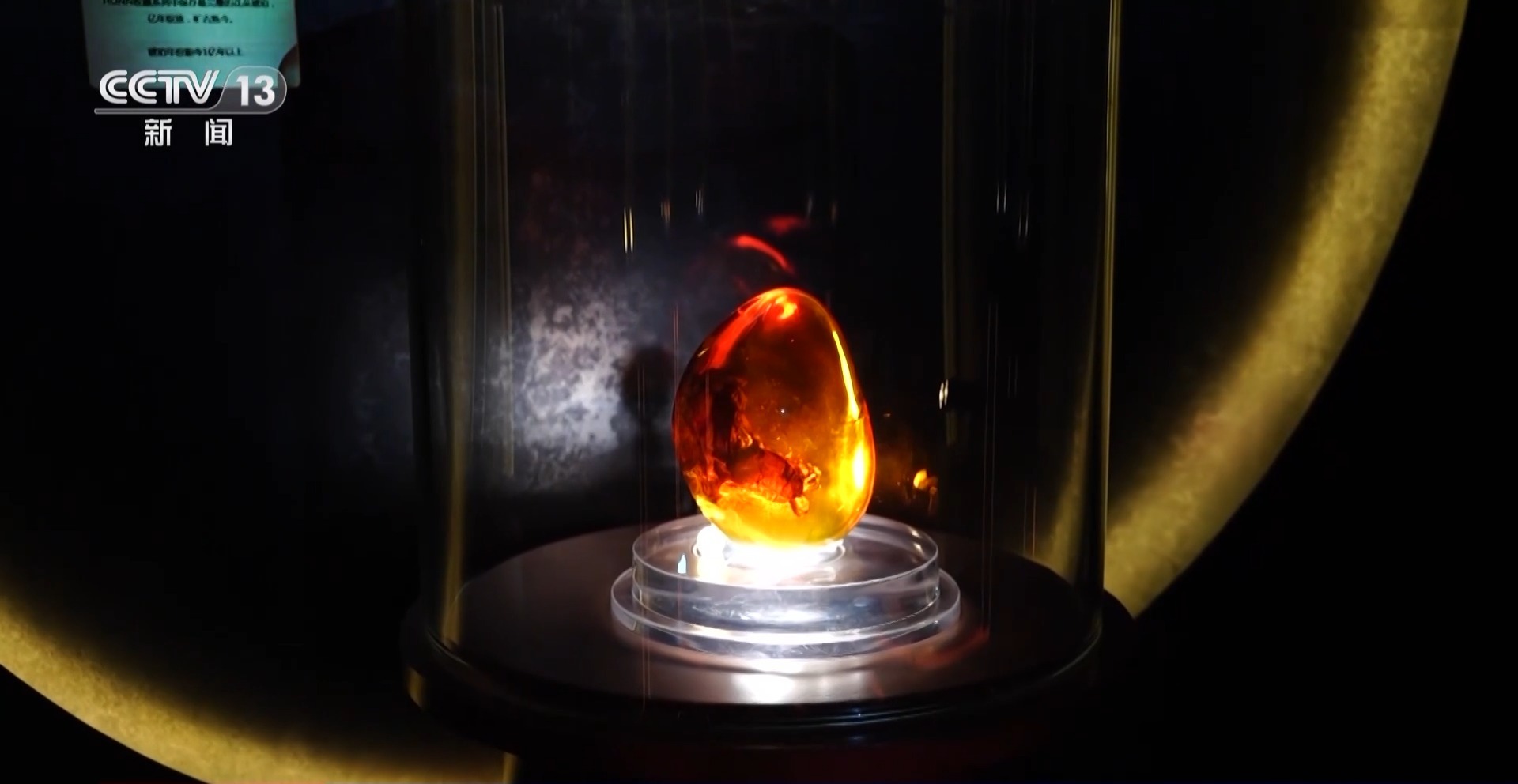 白岩松:几年前,进博会开幕的时候,人们用四个字来做表达,那就是未来已来。的确,进博会让大家更加关注未来,但是千万别忘了,在进博会的时候人们也能看到非常悠久的历史,比如说一亿年前,一滴树脂裹着动植物坠落到大地,穿越一亿多年的这种时光,变成了极其漂亮的琥珀。一亿年前可是白垩纪的时代,恐龙还是这个世界的主角,但是这些琥珀穿越岁月的时光之后,从瑞典来到了这届的进博会,也就是现在我所看到的这个展览空间里头的这些展品。