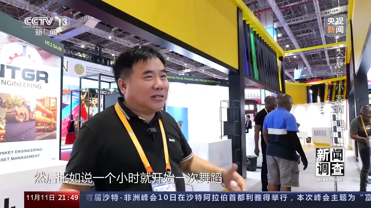 李林国:你看那边在排练,南非有很好的民族歌曲、民族舞蹈,我真的好想把它们引进到中国。一演的时候,人家人全部都围过来,这是多好的宣传。展台一定要亮亮的,我也跟他们说,我说明年的展台我跟他们一样高,要不然你看二号馆,二号馆泰国的好高,我们的好低,泰国是红色的,它多显眼,我们这一比好像躲在角落。我一定要做得很显眼,然后比如说一个小时就开始一次舞蹈,舞蹈好了以后请我们的官员来介绍南非,这个活动把南非搞得漂漂亮亮的。