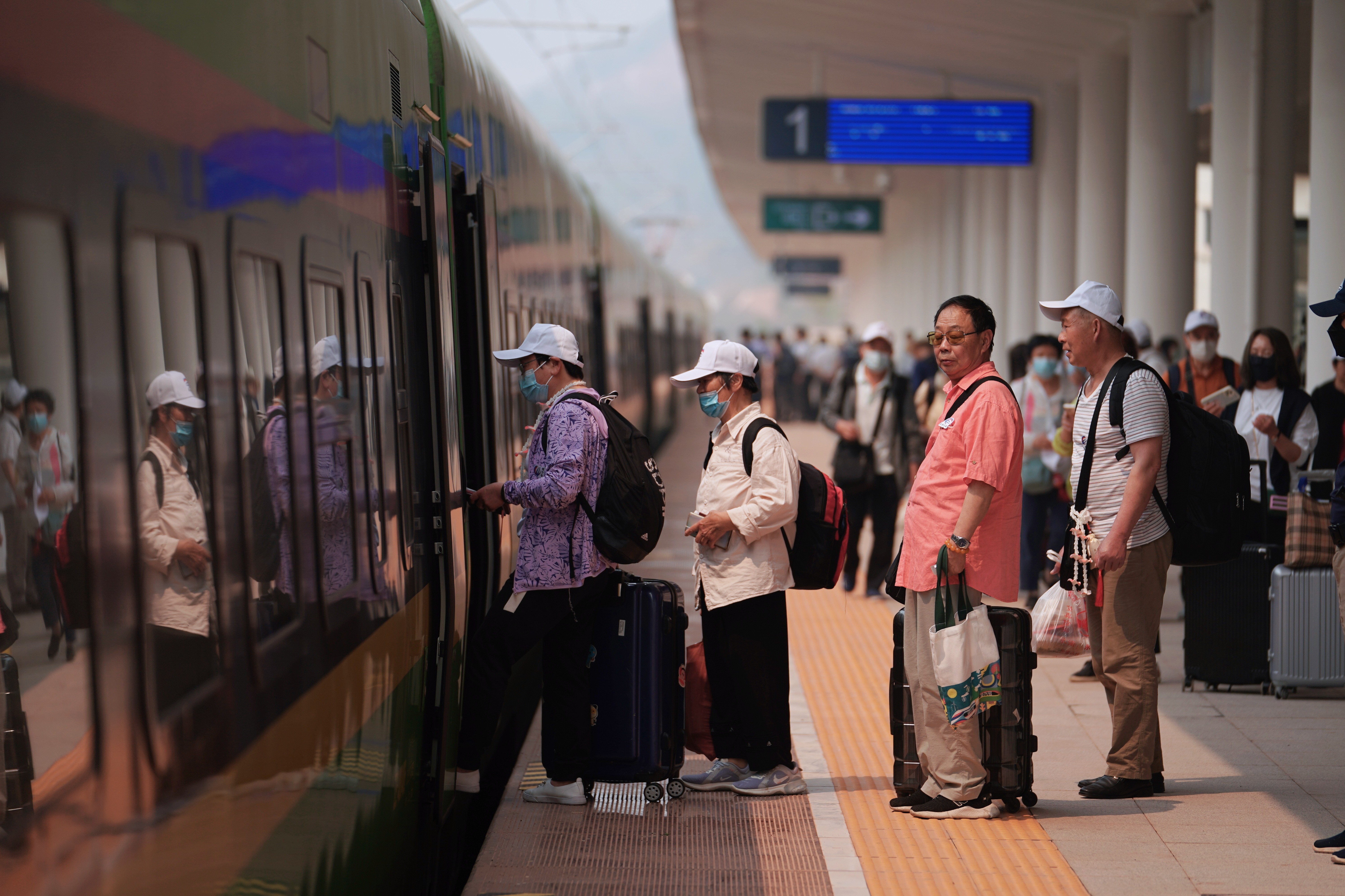 4月13日,中老铁路从中国昆明南站、老挝万象站双向对开D887次和D888次国际旅客列车,两地乘火车可当日通达。列车使用动力集中型“复兴号”“澜沧号”动车组开行,最高运行时速160公里。( 新华社)