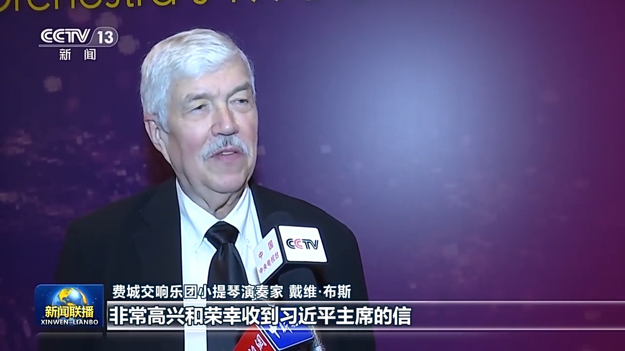 费城交响乐团小提琴演奏家 戴维·布斯:非常高兴和荣幸收到习近平主席的信。1973年,我随团第一次来到中国。此后,每一次乐团访华我都有参加,看到了这里发生的巨大变化。我想,当年的访问犹如种下了一颗友谊的种子,而后生根发芽,如今已长成参天大树。