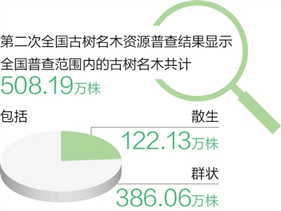 第二次全国古树名木资源普查结果显示,全国普查范围内的古树名木共计508.19万株,包括散生122.13万株和群状386.06万株。今年4月,国家林草局启动“野生动植物和古树名木鉴定技术及系统研发”应急揭榜挂帅项目。据了解,该项目计划利用两年时间,研发具有高效、精准、权威和普适性特点的野生动植物物种鉴别和古树名木树龄鉴定技术,显著提升野生动植物的识别效率和古树名木树龄的鉴定精度,支撑我国生物多样性保护与管理工作。