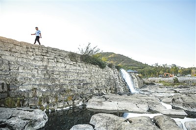 白霓古堰位于湖北省崇阳县,包括石枧堰和远陂堰两座古堰。白霓古堰是我国丘陵山区塘堰灌溉工程的代表,也是古代大规模砌石结构水利工程的典型代表。图为村民行走在白霓古堰上。新华社记者 伍志尊摄